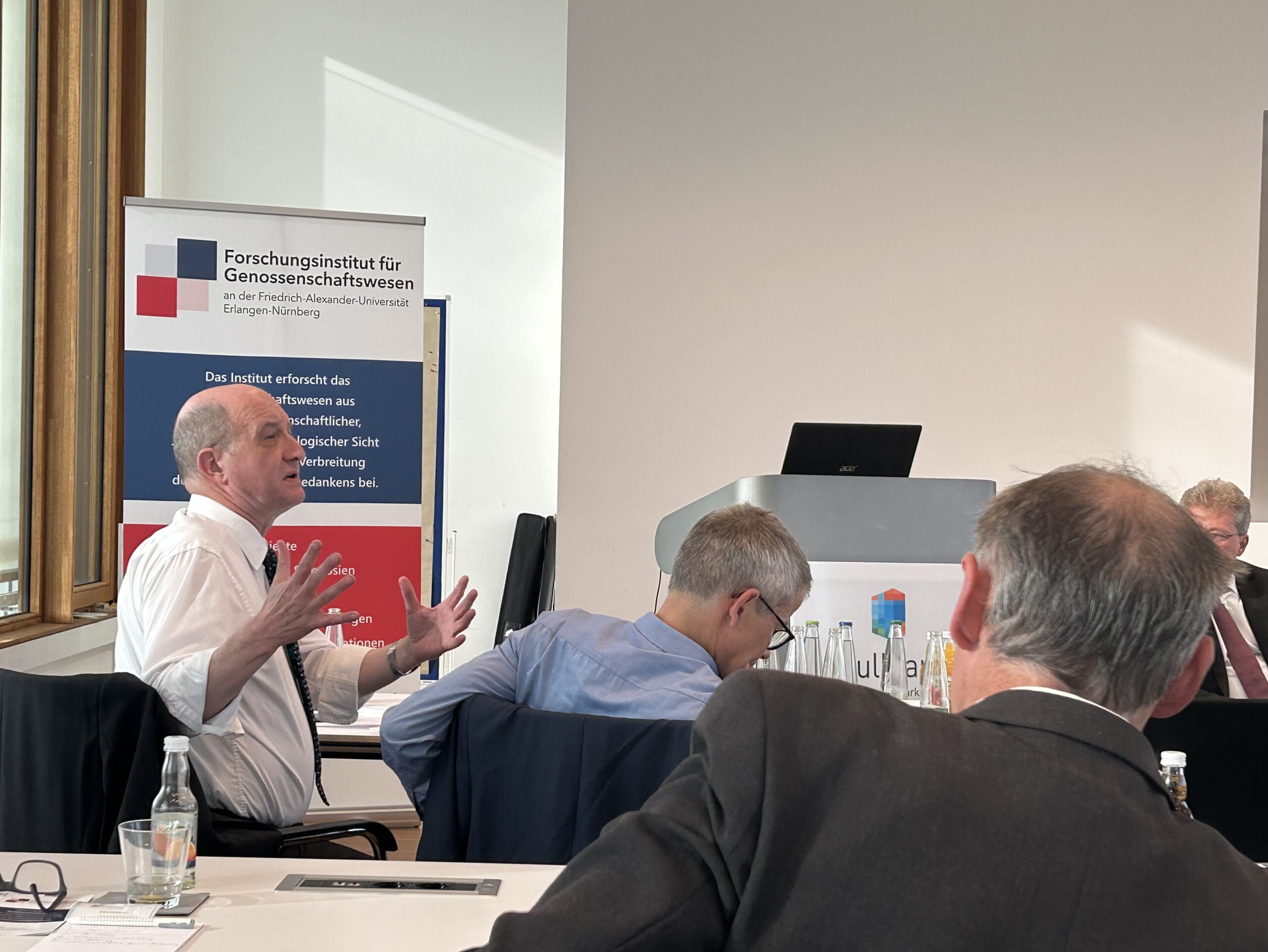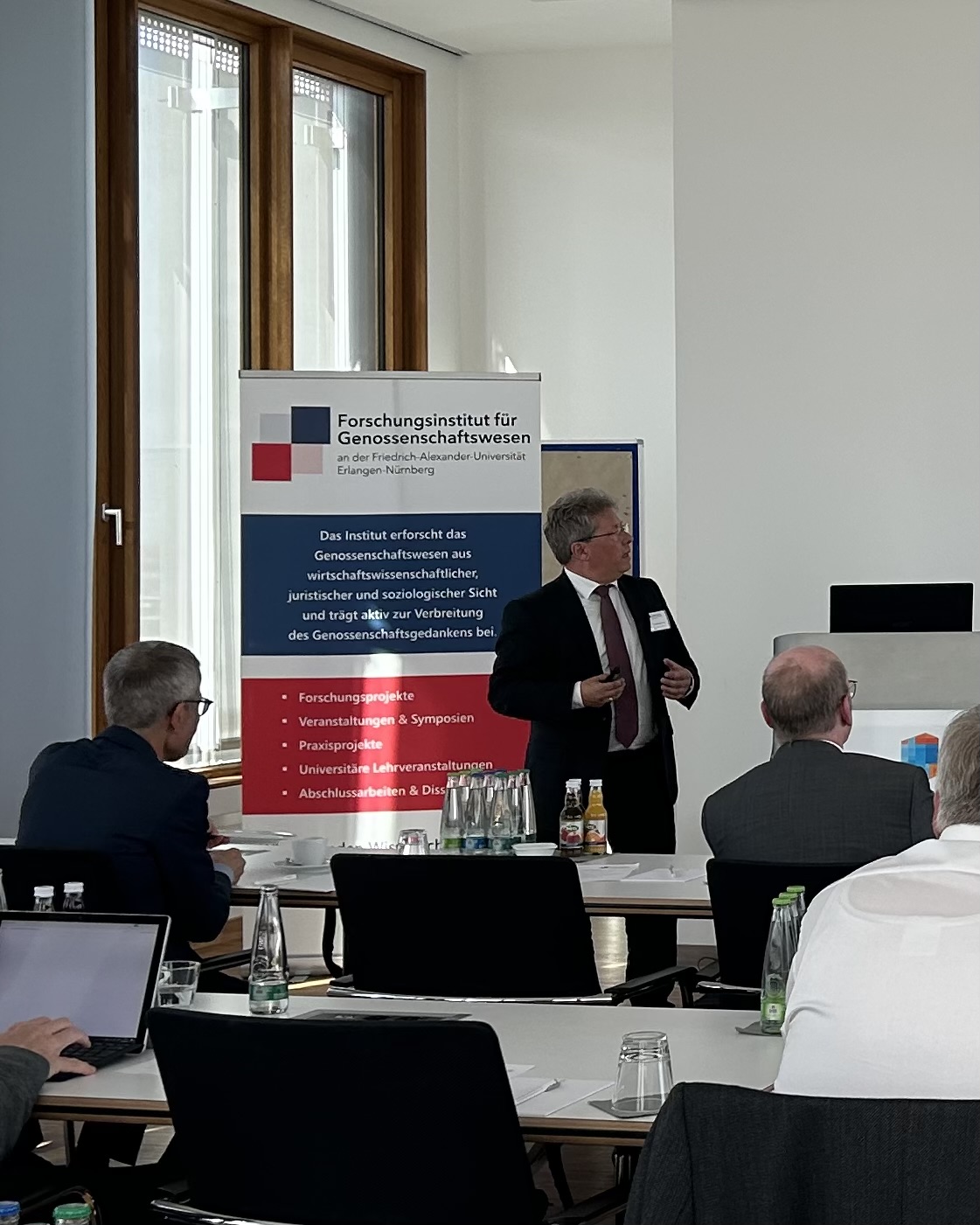 Der Vorstandsvorsitzende des Genossenschaftsinstituts, Prof. Dr. Matthias Wrede, sowie der stellvertretende Vorstandsvorsitzende, Prof. Dr. Jochen Hoffmann, begrüßten zunächst die Teilnehmer und leiteten mit kurzen themenspezifischen Impulsen die Veranstaltung ein.