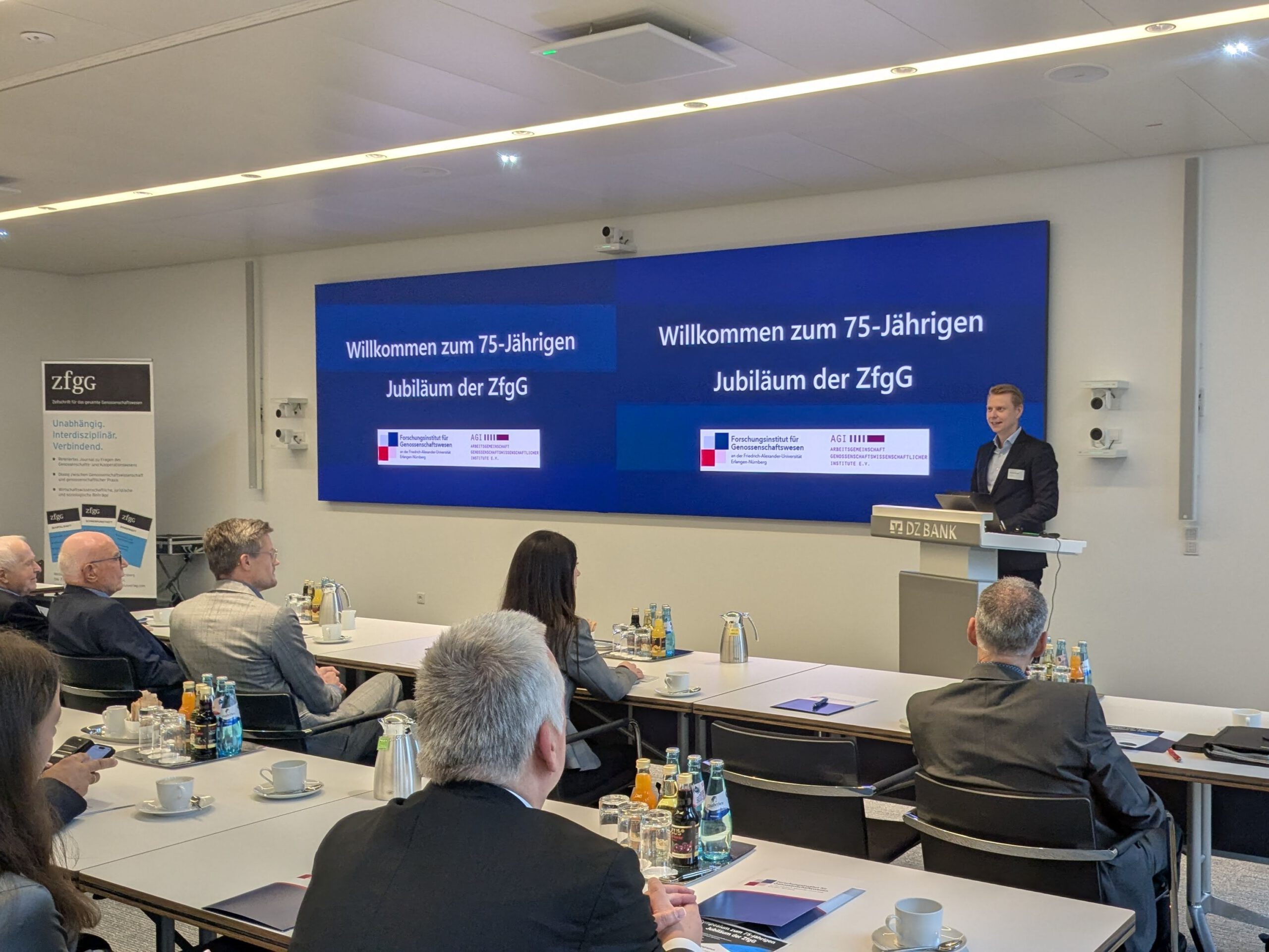 Am 8. Oktober 2025 fand im Hause der DZ BANK AG in Frankfurt am Main eine ganztägige Veranstaltung anlässlich des 75-jährigen Bestehens der Zeitschrift für das gesamte Genossenschaftswesen (ZfgG) statt. Die Jubiläumstagung vereinte rund 50 Gäste aus Wissenschaft und Praxis, um gemeinsam die Bedeutung und Entwicklung der interdisziplinären Fachzeitschrift zu würdigen und aktuelle Fragestellungen der Genossenschaftsforschung zu diskutieren.